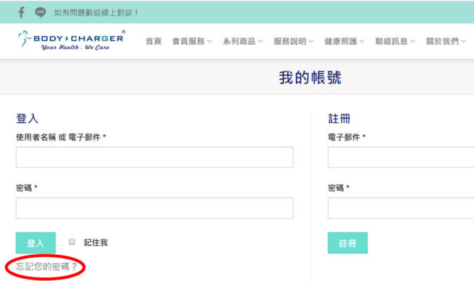 忘記密碼時,可以點選網頁右上角的會員服務按鈕,再點選「忘記密碼」去設定新密碼,這是最簡便的方法。請依下列步驟操作: