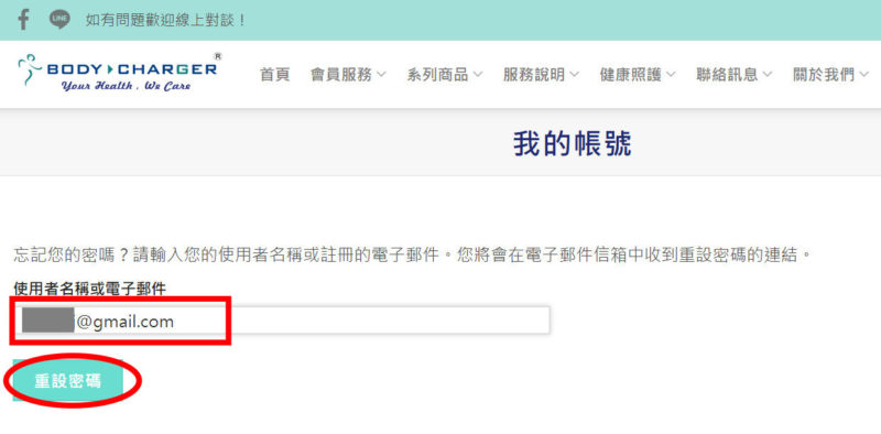 3、輸入你當初申請帳號的郵件地址,然後按「重設密碼」