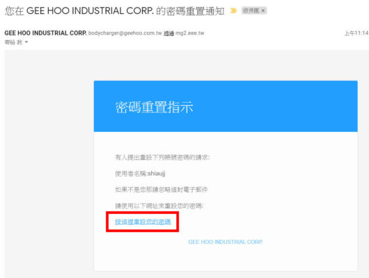 5、開啟該郵件,點選「按這裡重設你的密碼」